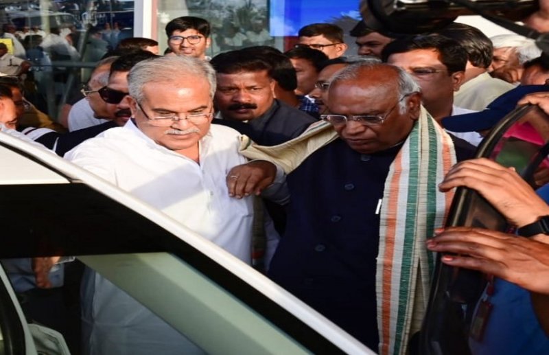 कांग्रेस का राष्ट्रीय अधिवेशन: कांग्रेस के राष्ट्रीय अध्यक्ष मल्लिकार्जुन खड़गे और अशोक गहलोत रायपुर पहुंचे, CM भूपेश बघेल ने किया स्वागत
