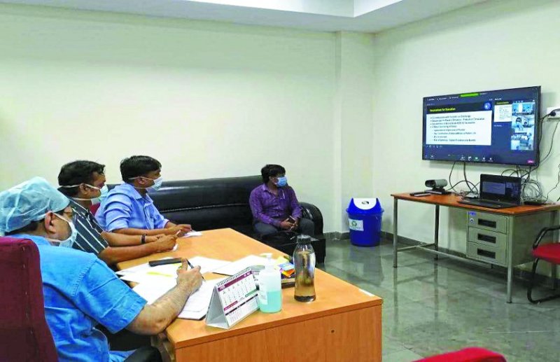 एम्स के निदेशक प्रो. (डॉ.) नितिन एम. नागरकर वीडियो कान्फ्रेंसिंग के माध्यम से आईसीएमआर के डॉक्टरों से क्लीनिकल ट्रायल पर चर्चा करते हुए।