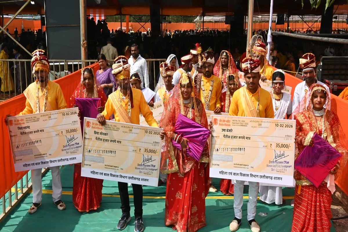 मुख्यमंत्री कन्या विवाह योजना के अंतर्गत 6414 जोड़े की शादी मंगलवार को किया गया। उन्होंने चर्चा करते हुए कहा कि 2005 में यह पूर्व मुख्यमंत्री डॉ रमन सिंह इस योजना की शुरुआत की थी। पहले लोग अपना जमीन-जयदाद बेचकर कन्याओं का विवाह किया करते थे, परन्तु अब उनके लिए सरकार हैं। वही 35000 रुपए का सहयोग प्रदान करने की बात की। इस सामुहिक विवाह 6414 जोड़े की शादी हो रही जिनमें, मुस्लिम समाज के 3, ईसाई 113, बौद्ध से 5 जोड़ो की शादी हुई।