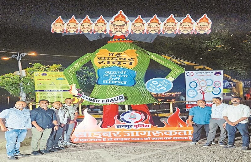 तुम्हारी अज्ञानता मेरी ताकतदशहरा के दिन बुराई के प्रतीक रावण का दहन किया जाता है। इस दिन आम लोगों से भी नैतिक रूप में मन के भीतर की बुराई को खत्म करने की अपील की जाती है। वर्तमान में साइबर ठगी भी रावण का रूप ले चुका है। यह साइबर रावण तभी खत्म होगा, जब लोग साइबर क्राइम-ठगी को लेकर अपनी अज्ञानता दूर करेंगे। रायपुर पुलिस साइबर रावण के जरिए यही संदेश दे रही है कि जागरूक बनकर अज्ञानता को दूर करें।