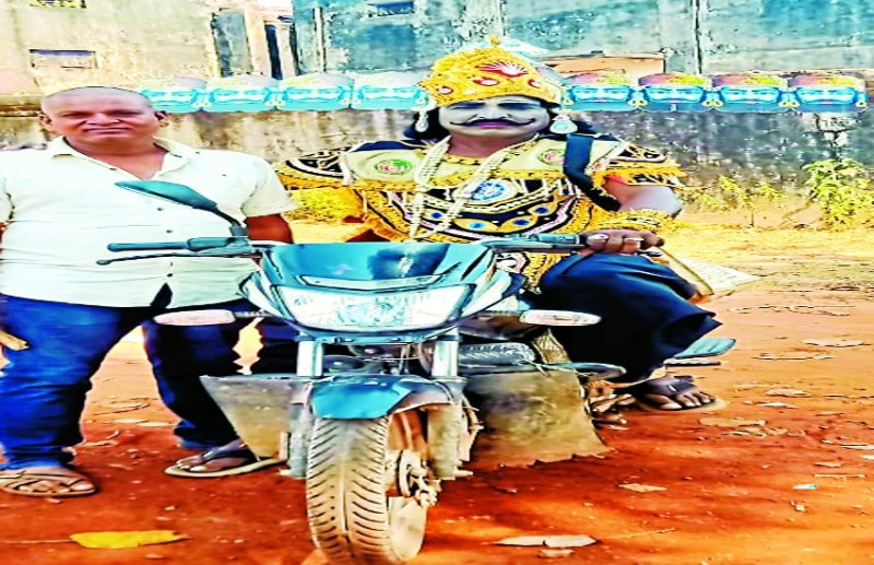 काले लिबास में शहर की सडक़ों पर बाइक से फर्राटे भर रहे लंकापति रावण