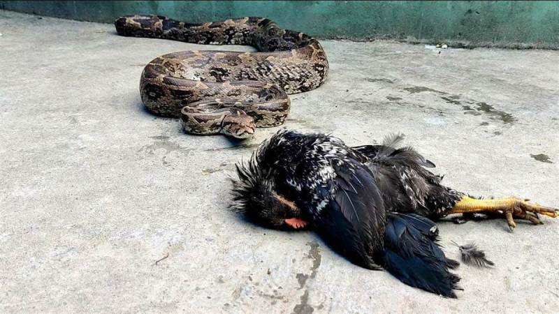यहां रोज़ की तरह ओमप्रकाश की मां बाड़ी में काम कर रही थी। झाड़ियों के बिच से मुर्गी के फड़फड़ाने की आवाज़ आई। इस पर वह दौड़कर नजदीक पहुंची। यहां उन्होंने देखा कि एक अजगर ने मुर्गी को दबोच रखा है। इस पर महिला ने डंडे पिटकर उसे छुड़ाने का प्रयास किया । इससे बिफरे अजगर ने महिला पर हमला कर दिया। किसी तरह बचकर महिला वहां से भागी और स्वजनों को बुलाया। मौके पर पहुंचे स्वजनों ने बीना देरी किए इसकी जानकारी स्नेक रेस्क्यू टीम के प्रमुख जितेन्द्र सारथी को दी। कुछ ही देर में जितेन्द्र अपने टीम के सदस्य राकेश मानिकपुरी और राजू बर्मन के साथ मौके पर पहुंचे और रेस्क्यू किया। घास में छिप कर बैठे अगगर को सावधानी पूर्वक जितेन्द्र ने बाहर निकाला। इससे अजगर लगातार हमला करने लगा। किसी तरह उसे बोरी में सुरक्षित रखा गया और जंगल में छोड़ दिया गया।