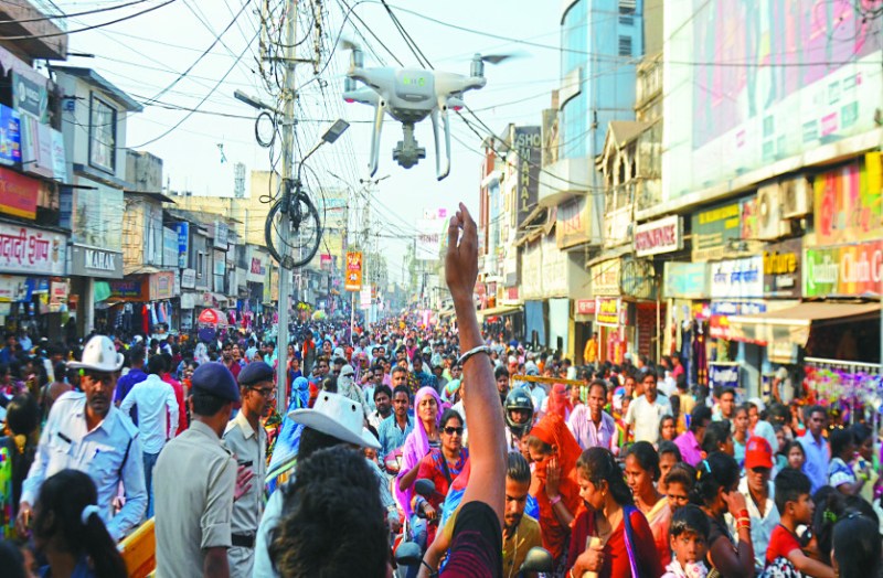 रायपुर. दिवाली के लिए धनतेरस का बाजार सजक र तैयार है। शहर के बाजारों में दो दिन पहले से ही त्यौहारी भीड़ शुरू हो चुकी है, जो कि धनतेरस के दिन चरम पर रहेगी। सुरक्षा के मद्देनजर राजधानी में पहली बार ड्रोन कैमरे की नजर से बाजार पर निगरानी रखी जा रही है। इसके लिए रविवार को पुलिस प्रशासन ने ट्रॉयल भी किया।
