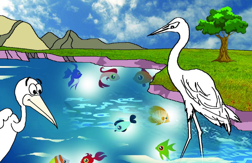 कउंवा ह मनपसंद मछरीमन ल गटकिस अउ डकारत जिहां जाना रिहिस तिहां चलदिस। एती कोकड़ा कहिथे- ये कउंवा मतलबी अउ सुवारथी हे मितान। ऐला ककरो दुख-सुख ले कांही लेना-देना नइ राहय। टेंगना कहिथे- अरे छोड़ न मितान। दुनिया म सब तरह के जीव रहिथे। सब ल निभावत चले ले परथे।