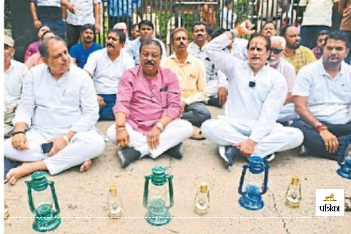 बिजली की दरों में वृद्धि! विनियामक आयोग में लालटेन और चिमनी लेकर पहुंचे कांग्रेसी(photo-patrika)