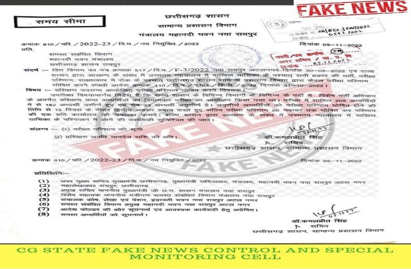 सोशल मीडिया में वायरल हुआ फर्जी आदेश, रज्य शासन ने झूठी खबर होने की दी जानकारी
