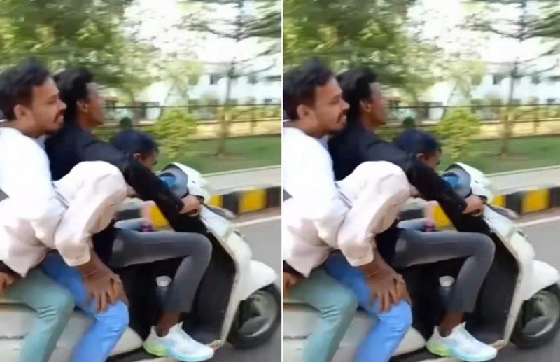 यह वीडियो सोमवार का है। बताया जा रहा है कि चारों दोस्त करीब 3 बजे पंडित रविशंकर शुक्ल विश्वविद्यालय कैंपस के भीतर दोपहिया सीजी 04 एमएल 1883 में चार छात्र सवार होकर (youth stant video viral) स्टंटबाजी कर रहे थे। खुलेआम यातायात नियमों का उल्लंघन करते हुए (Raipur Police) एक स्कूटर पर चार लोग सवार थ। इस दौरान तीन दोस्त स्कूटर में सवार थे तो वहीं एक को तीनों ने पार्सल की तरह अपने हाथ में पकड़ा हुआ था। किसी ने भी हेलमेट भी नहीं पहना था।