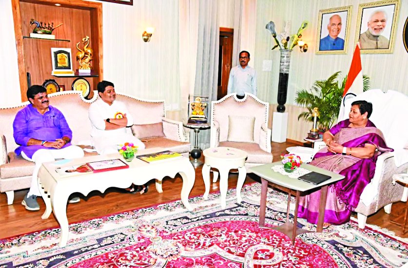 राज्यपाल अनुसुईया उइको को बैठक का न्योता देने पहुंचे महापौर एजाज ढेबर और सभापति प्रमोद दुबे।
