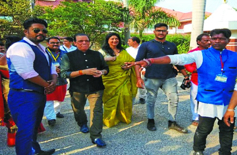 वीआईपी रोड स्थित निरंजन धर्मशाला में पत्नी सुधा संग पहुंचे एक्टर गोविंद नामदेव।