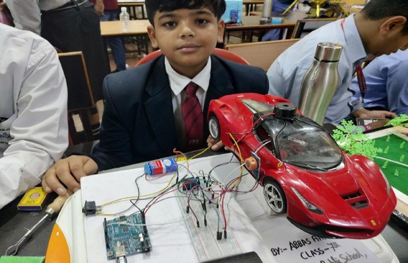 कक्षा सातवीं के अब्बास अहमद ने एक मॉडल बनाया जो कि सेंसर से काम करता है। इसके तहत कोई व्यक्ति शराब पीकर कार चलाता है तो ऑटोमेटिक अलार्म बजने लगेगा। इसी तरह अगर गाड़ी में आग लगे तो वह फौरन बंद हो जाएगी। अब्बास ने बताया कि अगर शो रूम से ही यह मॉडल इनबिल्ड हो जाए तो दुर्घटनाओं पर लगाम कसी जा सकेगी।