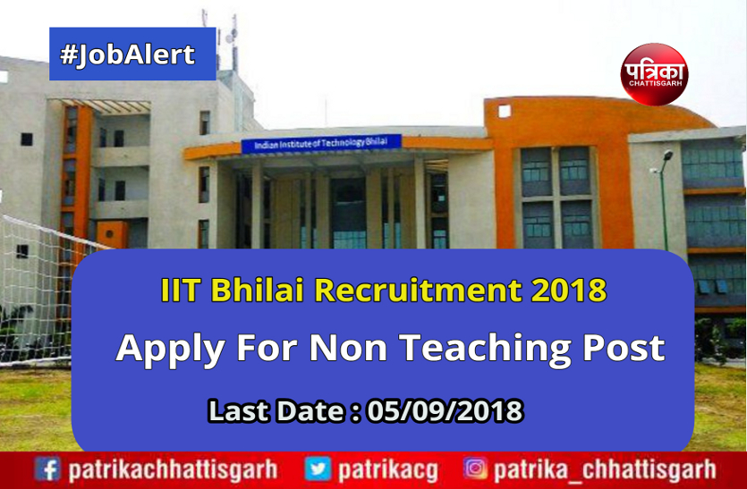 रायपुर. अगर आप किसी अच्छी सरकारी नौकरी की तलाश कर रहे हैं तो आपके लिए एक सुनहरा मौका। दरअसल, इंडियन इंस्टीट्यूट ऑफ टेक्नोलॉजी (आईआईटी) भिलाई ने नॉन टीचिंग के कई पदों पर भर्ती के लिए आवेदन आमंत्रित किए हैं। पदों की कुल संख्या 42 है। अगर आप इन पदों पर आवेदन करने के लिए योग्यता रखते हैं वे 5 सितंबर 2018 तक ऑनलाइन आवेदन कर सकते है।