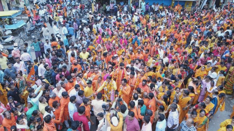 दिनेश यदु @ रायपुर. सावन के आखिरी रविवार को जहां एक ओर मंदिरों में कांवडियों की भीड़ सुबह से शाम तक रही, वहीं पूर्व कैबिनेट मंत्री राजेश मूणत ने भव्य कांवड़ यात्रा निकाली। इसमें लगभग 25 हजार से अधिक कांवड़ियों ने प्रयागराज की त्रिवेणी, राजिम की त्रिवेणी व प्रदेश के अन्य नदियों से जल लेकर पैदल यात्रा करते हुए महादेव घाट स्थित बाबा हटकेश्वरनाथ में जलाभिषेक किया। गुढ़ियारी स्थित मारुति मंगलम भवन से पूजा कर कांवड़ यात्रा का शुभारंभ किया गया, जिसमें ढोल-नगाड़ा, डीजे साउंड, दो महादेव की चलित झांकियों के साथ ही बनारस और ओडिशा के कालाहांडी कलाकारों की चलित झांकी आकर्षण का केंद्र रही।