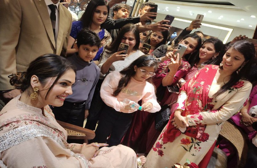 रायपुर में एक कार्यक्रम में प्रशंसकों से घिरी अभिनेत्री ईशा कोप्पिकर।
