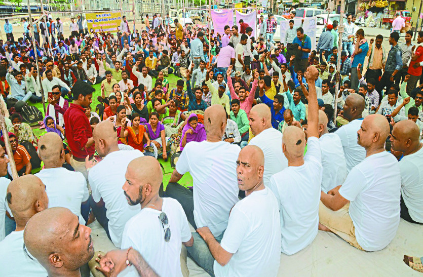 रायपुर . 108/102 कर्मियों के विरोध प्रदर्शन को शासन की ओर से तगड़ा झटका लगा है। उनकी मांगों को अवैधानिक बताते हुए श्रम विभाग ने तुरंत कार्य पर लौटने के आदेश दिया है। वहीं न्यूनतम मानदेय सहित ६ सूत्रीय मांगों पर अड़े कर्मचारियों ने तीसरे दिन सिर मुंडवा कर विरोध प्रदर्शन किया। विरोध के दूसरे चरण में सैकड़ों कर्मी ईदगाह भाठा धरना स्थल में जुटे और दिन भर विरोध करते रहे। वहीं इस हड़ताल का खामियाजा मरीजों को भुगतना पड़ रहा है। राजधानी सहित प्रदेश के अन्य इलाकों से मरीजों की परेशानियां उभरकर सामने आ रही हैं। वहीं प्रबंधन प्रदेश में ९० फीसदी सेवाएं संचालित करने की बात कर रहा है।