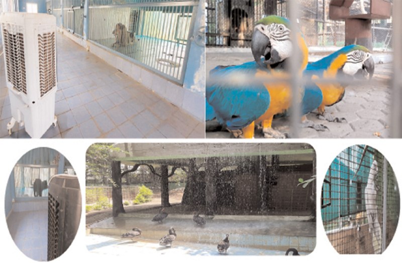 विदेशी पक्षी 30 से 35 डिग्री तक का तापमान सहन कर सकते हैं। इससे अधिक होने पर उनकी सेहत बिगड़ जाती है। इसलिए गर्मी का असर कम करने के लिए बाड़े में कूलर, खस व पानी के साथ फौव्वारे भी लगाए गए हैं। जंगल सफारी में खास इंतजाम जंगल सफारी में शेर, भालू के बाड़े को भी कूलर से ठंडा रखा जा रहा है। गर्मी अधिक पड़ने की वजह से बाड़े में रहने वाले वन्यप्राणियों को बेचैनी महसूस होती है। साथ ही सेहत पर बुरा असर पड़ सकता है। इसे देखते हुए सभी बाड़ों में कूलर लगाए गए हैं। साथ ही भरपूर पानी और उनकी डाइट में भी बदलाव किया गया है।
