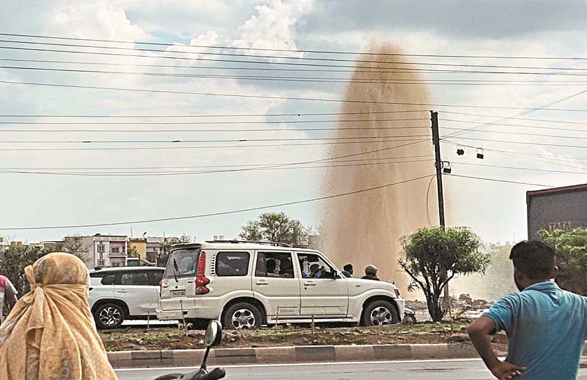 कुशालपुर में फूटी मेन लाइन, 30 फीट ऊंचाई तक फव्वारे की तरह बहा पानी