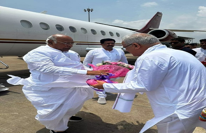 रायपुर पहुंचे मल्लिकार्जुन खरगे, सीएम बघेल ने किया स्वागत