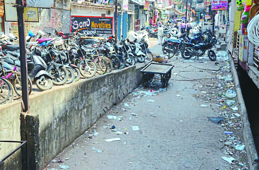 रवि भवन और कृष्णा पैलेस होटल के बीच से होकर जो सडक़ आम लोगों के आने-जाने के लिए नगर निगम ने बनाया था, उस सडक़ पर इस कदर वाहनों की पार्किंग की जाती है कि पैदल चलना मुश्किल होता है।