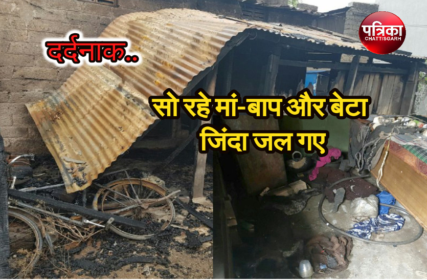 रायपुर . राजधानी के भनपुरी इलाके में लगी भीषण आग में मां-बाप और बेटा जिंदा जल गए। हादसा गुरुवार देर रात की है। सुबह जब लोगों ने भीषण आग की लपटें को देखा तो इसकी सूचना फायर ब्रिगेड को दी। घटना स्थल पर ही तीनों की लाश जलकर खाक हो गई थी। दर्दनाक हादसे का मंजर देख लोगों के रौंगटे खड़े हो गए। खमतराई पुलिस ने शव को बरामद कर पीएम के लिए अंबेडकर अस्पताल भेज दिया। गैस में खाना बनाने के बाद हो गई ये गलती और फिर भडक़ उठी मौत की ये आग। देखिए VIDEO
