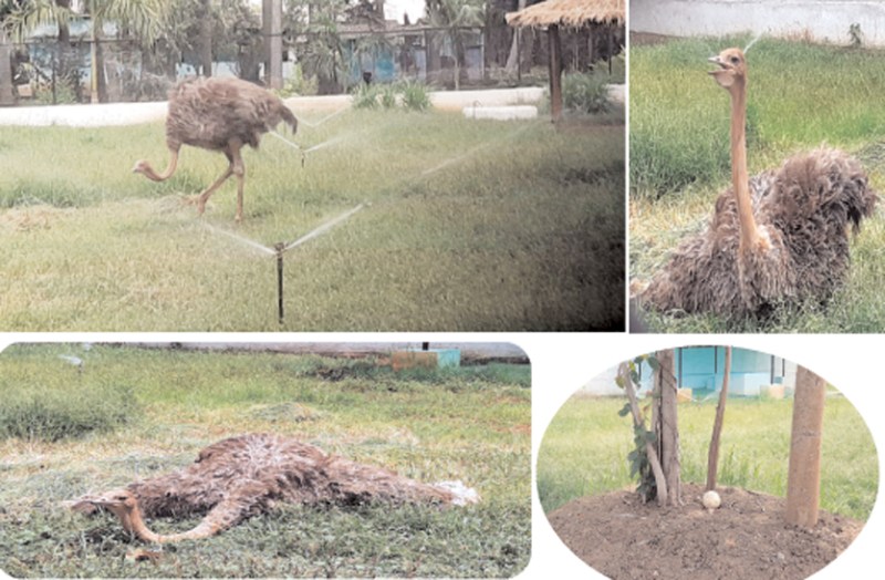 डॉ. वर्मा ने बताया कि मादा शुतुरमुर्ग पहली बार में 12 से 15 अंडे देती है। प्रत्येक अंडे का वजन एक किलो से डेढ़ किलो का होता है। मादा शुतुरमुर्ग की जैसे-जैसे उम्र बढ़ती है, वैसे ही अंडे देने की संख्या भी बढ़ती जाती हैं। अंडों को सेकने का काम नर-मादा मिलकर करते हैं। अंडे देने के 40 से 42 दिन बाद बच्चे बाहर निकलते हैं। नंदनवन में शुतुरमुर्ग के जोड़े को पहले छोटे बाड़े में रखा गया था। लेकिन यहां के हिरण को जंगल सफारी ले जाने के बाद शुतुरमुर्ग को चार माह पहले ही उनके बड़े बाड़े में शिफ्ट किया गया है। गर्मी में पानी का इंतजाम करनेके लिए स्प्रिंकलर लगाया गया है।