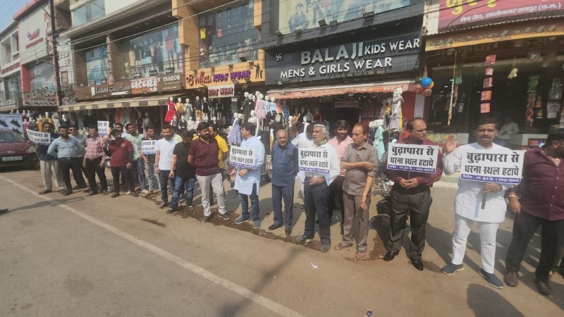 ,,जबकि यह जानते हुए भी कि उक्त स्थान से शव वाहन का गुजारना भी पीड़ादायक है ऐसे में रायपुर के अधिकारियों को तत्काल पहल कर धरना स्थल को अन्यत्र स्थानांतरित किए जाने का तत्काल निर्णय किया जाना चाहिए । आज के प्रदर्शन में नगर निगम के अध्यक्ष प्रमोद दुबे के अलावा दीपक कृपलानी महेश प्रजवानी करतार परसवानी दीपक आहूजा नरेश चंदवानी भारत चंदवानी संजय प्रथम वाणी डॉक्टर रमन दास मनोज देवानी, अशोक कुकरेजा दीपक चंद्राकर विक्की परसवानी राजा बजाज बंटी बजाज जय गजवानी विकास मंदानी गोलू मंदानी सोनू जैन तरुण जैन सहित आम नागरिक सड़क पर उतर कर प्रदर्शन किया।