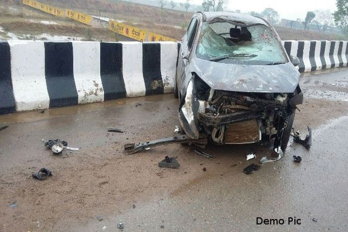 दर्दनाक हादसा: डिवाइडर से टकराकर पलटी तेज रफ्तार कार, एक की मौत, 4 घायल