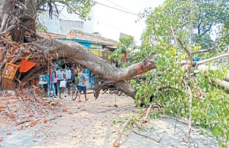 न अंधड़ न बारिश... दिनदहाड़े बीच सड़क पर गिर गया पीपल का एक बड़ा हिस्सा, 2 घायल