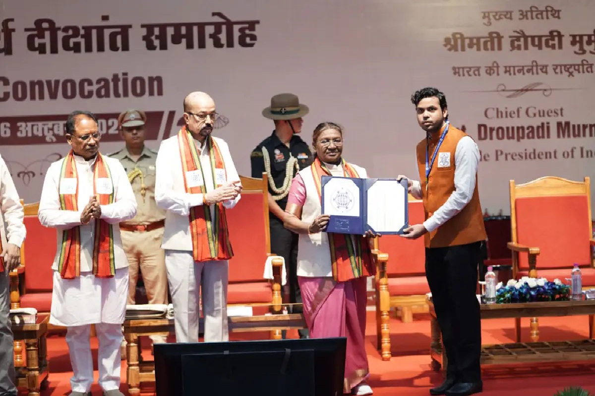 President in CG: राष्ट्रपति द्रौपदी मुर्मू 2 दिन के छत्तीसगढ़ दौरे पर हैं। आज आई.आई.टी. भिलाई के तृतीय और चतुर्थ दीक्षांत समारोह में शामिल होने भिलाई पहुंच गई है। रायपुर माना एयरपोर्ट से सुबह 11.10 बजे हेलीकॉप्टर से भिलाई पहुंची। भिलाई पहुंचने से पहले रायपुर में उन्होंने भगवान जगन्नाथ मंदिर जाकर पूजा अर्चना की। वहां से सड़क मार्ग से होते हुए माना एयरपोर्ट पहुंचेंगी। इसको देखते हुए रायपुर में उनका रूट तय किया गया है।