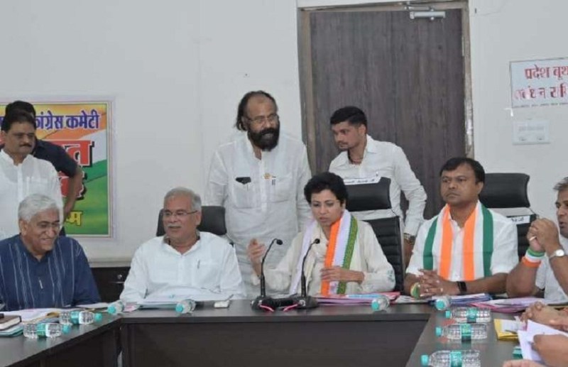 बैठक में मुख्यमंत्री भूपेश बघेल, प्रदेश प्रभारी कुमारी सैलजा, चुनाव समिति और कांग्रेस प्रदेश अध्यक्ष दीपक बैज, डिप्टी सीएम टीएस सिंहदेव, विधानसभा अध्यक्ष चरणदास महंत के साथ समिति में शामिल 8 मंत्री और पदाधिकारी मौजूद थे। सैलजा ने टिकट को लेकर कहा, किसी भी प्रत्याशी के आवेदन पार्टी के बड़े नेता या फिर चुनाव समिति के सदस्यों से स्वीकार नहीं किए जाएंगे। इसके लिए उम्मीदवारों को 17 से 22 अगस्त तक ब्लॉक कांग्रेस कमेटी में ही टिकट के लिए आवेदन करना होगा। उन्होंने कहा, पार्टी और नेतृत्व के प्रति निष्ठा होनी चाहिए।