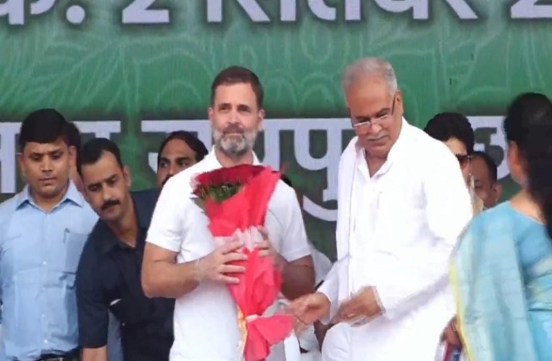 Rahul gandhi in Raipur : इस अवसर पर पूर्व केंद्रीय मंत्री कुमारी शैलजा, छत्तीसगढ़ विधानसभा के अध्यक्ष डॉ चरणदास महंत, उप मुख्यमंत्री टीएस सिंहदेव, पंचायत मंत्री रविन्द्र चौबे, उच्च शिक्षा मंत्री उमेश पटेल, संस्कृति मंत्री अमरजीत भगत, सांसद दीपक बैज, सीएसआईडीसी के अध्यक्ष नंदकुमार साय उपस्थित हैं।
