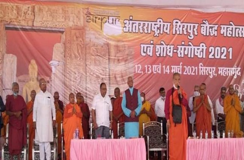 अंतर्राष्ट्रीय सिरपुर बौद्ध महोत्सव एवं शोध संगोष्ठी का शुभारम्भ मुख्य अतिथि भदंत नागार्जुन सुरई ससाई ने किया।