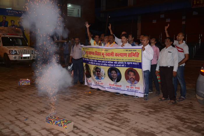 रायपुर . राजधानी के न्यू स्वागत विहार में प्लॉट खरीदने वाले लंबी लड़ाई के बाद जीत गए। हाईकोर्ट से न्याय मिलने पर 3200 परिवारों में खुशी की लहर दौड़ गई। गुरुवार शाम को न्यू स्वागत विहार भू स्वामी कल्याण समिति से जुड़े सदस्यों ने जयस्तंभ चौक में एकत्रित होकर पटाखे फोड़ कर जश्न मनाया। इसमें अनेक लोग शामिल हुए।