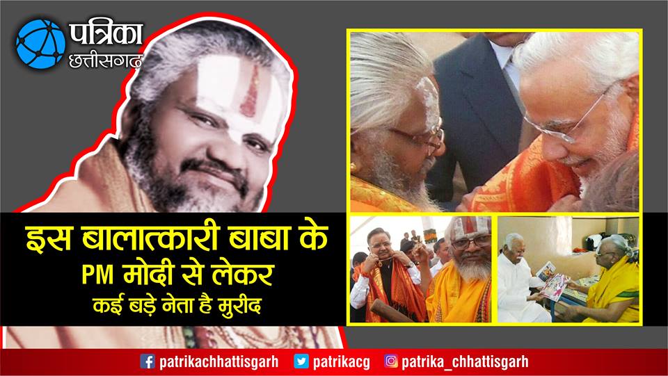 रायपुर. राम रहीम के बाद से पाखंडी बाबाओं को लेकर देशभर में चौंकाने वाले खुलासे हो रहे हैं। आए दिन बाबाओं पर हत्या, बालात्कार व घोटालों के आरोप उजागर हो रहे हैं। बाबा अपने सभी कुकर्म राजनीतिक रसूख के चलते कर रहे हैं। हाल ही में छत्तीसगढ़ के बिलासपुर की रहने वाली युवती से दुष्कर्म के मामले में घिरे राजस्थान के अलवर में रहने वाले बाबा फलाहार पर मामला दर्ज होने के बाद जो सामने आ रहा है वह काफी चौंकाने वाला है। बाबा का रसूख भी आशाराम और राम रहीम से कम नहीं था। प्रधानमंत्री नरेन्द्र मोदी से लेकर संघ प्रमुख मोहन भागवत तक से बाबा का परिचय था। इसके आलावा भी कई बड़े नेताओं के साथ फलाहारी बाबा की तस्वीरें जमकर वायरल हो रही हैं।