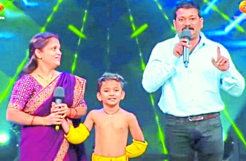 रियलिटी शो के सेट पर अपने पैरेंट्स के साथ अक्ष सोनी।