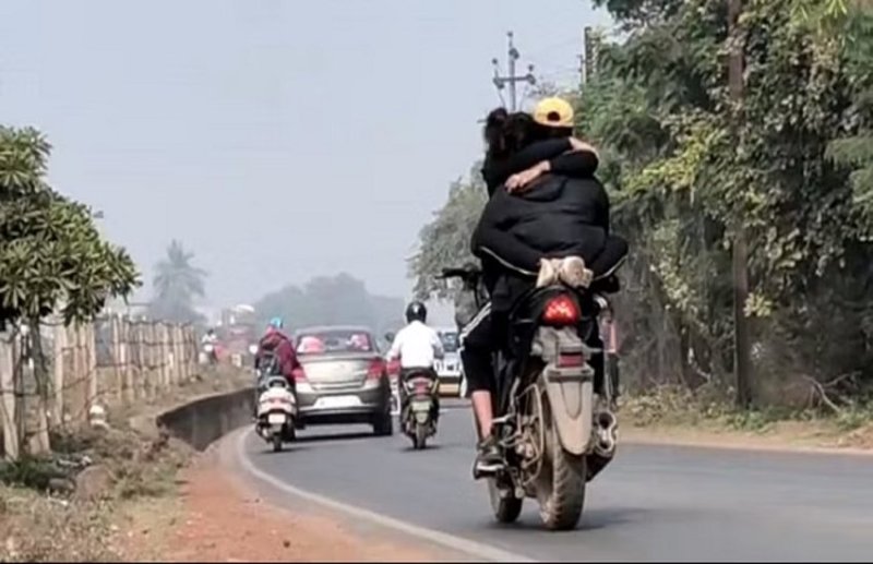 रायपुर. इश्क का एक और रंग लखनऊ से होते हुए भिलाई जा पहुंचा है। जी हां आपको बताते चलें कि छत्तीसगढ़ के भिलाई में वीडियो में युवक बाइक चलाता हुआ दिख रहा है तो युवती सामने से उसकी गोद में बैठी है और लड़के को बाहों में कसकर पकड़े हुए दिख रही है। युवती के अंदाज को देखते हुए कहा जा रहा है कि वह बीच-बीच में युवक को किस कर रही है। लड़की का चेहरा लड़के के जैकेट से छिपा हुआ नजर आ रहा है।