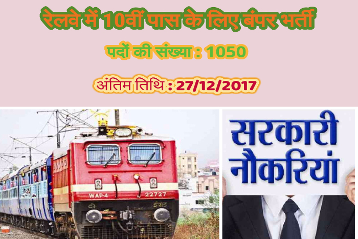 रायपुर . अगर आप पढ़े लिखे बेरोजगार हैं और सरकारी नौकरी की तलाश कर रहे हैं तो आपके लिए यह सुनहरा मौका है। बड़ी बात यह है कि दसवीं पास व्यक्ति इस सरकारी नौकरी के लिए आवेदन कर सकता है। दरअसल रेलवे की ओर से अप्रेंटिस की भर्ती की जा रही है। जिसके लिए दक्षिण पूर्व मध्य रेलवे जोन ने 1050 अप्रेंटिस पद पर भर्ती निकाली है। इच्छुक व योग्य उम्मीदवार इस पद पर आवेदन के लिए 27 दिसंबर 2017 या उससे पहले आवेदन कर सकते हैं।