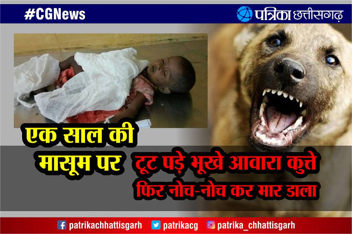 जानकारी के मुताबिक मामला राजधानी के अनुपम नगर इलाके का है, यहां के रहने वाले होरीलाल की एक साल की बेटी रिया अपने पांच साल के भाई के साथ शनिवार सुबह घर के बाहर खेल रही थी। तभी वहां आवारा कुत्तों ने उसे घेर लिया और उसे नोचना शुरू कर दिया। तभी मौके पर पहुंचे लोगों ने बमुश्किल आवारा कुत्तों के झुंड से मासूम को बाहर निकाला, लेकिन तब तक देर हो चुकी थी।