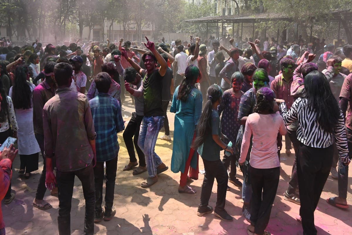 Raipur@patrika.com. राजधानी के जीई रोड़ के साइंस कॉलेज परिसर में छात्रों ने होली खेली।