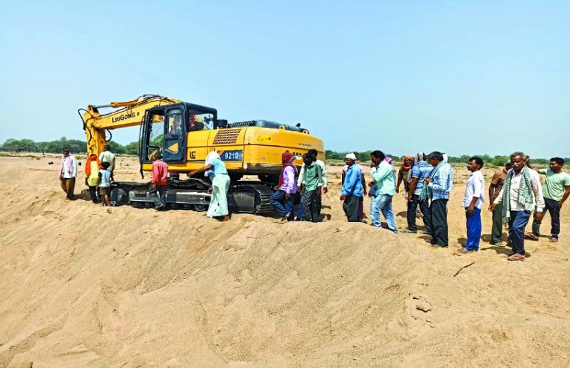 सूखा नदी में रेत के अवैध उत्खनन के खिलाफ लामबंद हुए ग्रामीण, चैन माउंटेन मशीन सील