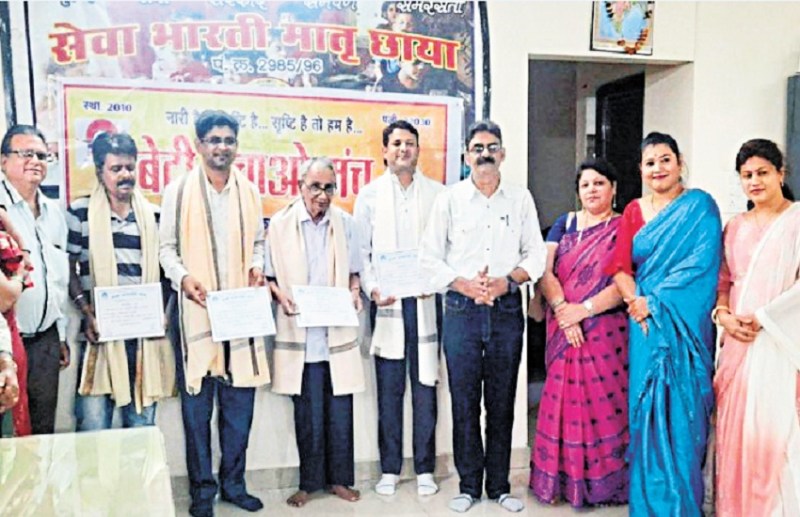 रायपुर. बेटी बचाओ मंच भाठागांव के पदाधिकारियों ने कोटा स्थित अनाथ बच्चों का आश्रम संचालित करने वाली संस्था सेवा भारती मातृ छाया के संचालनकर्ताओं को सम्मानित किया।
