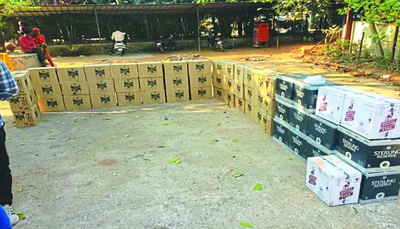 कंटेनर में शराब छुपाकर ले जा रहा था, पुलिस की घेराबंदी देखकर ड्राइवर कंटेनर छोड़कर भागा, 58 पेटी शराब जब्त