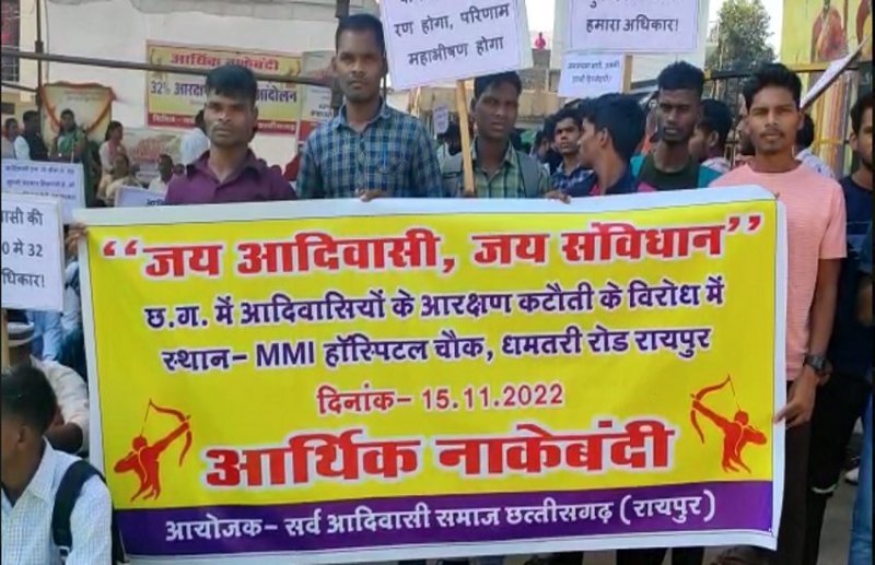 सर्व आदिवासी समाज ने की आर्थिक नाकेबंदी, 32 प्रतिशत आरक्षण बहाल की मांग