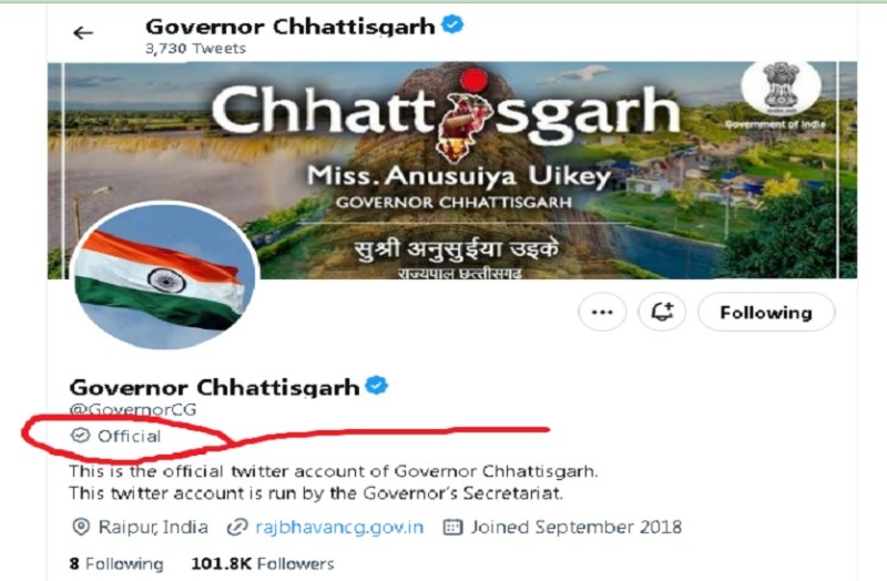 ट्विटर का ब्लूटिक के बाद एक और बदलाव, छत्तीसगढ़ के राज्यपाल समेत कई अकाउंट्स को दिया 'ऑफिशियल' लेबल
