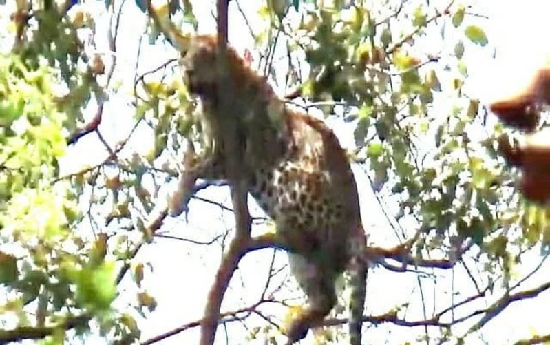 कौहा पेड़ पर चढ़े तेंदुए के दो शावक, वन विभाग ने लगाया पिंजरा