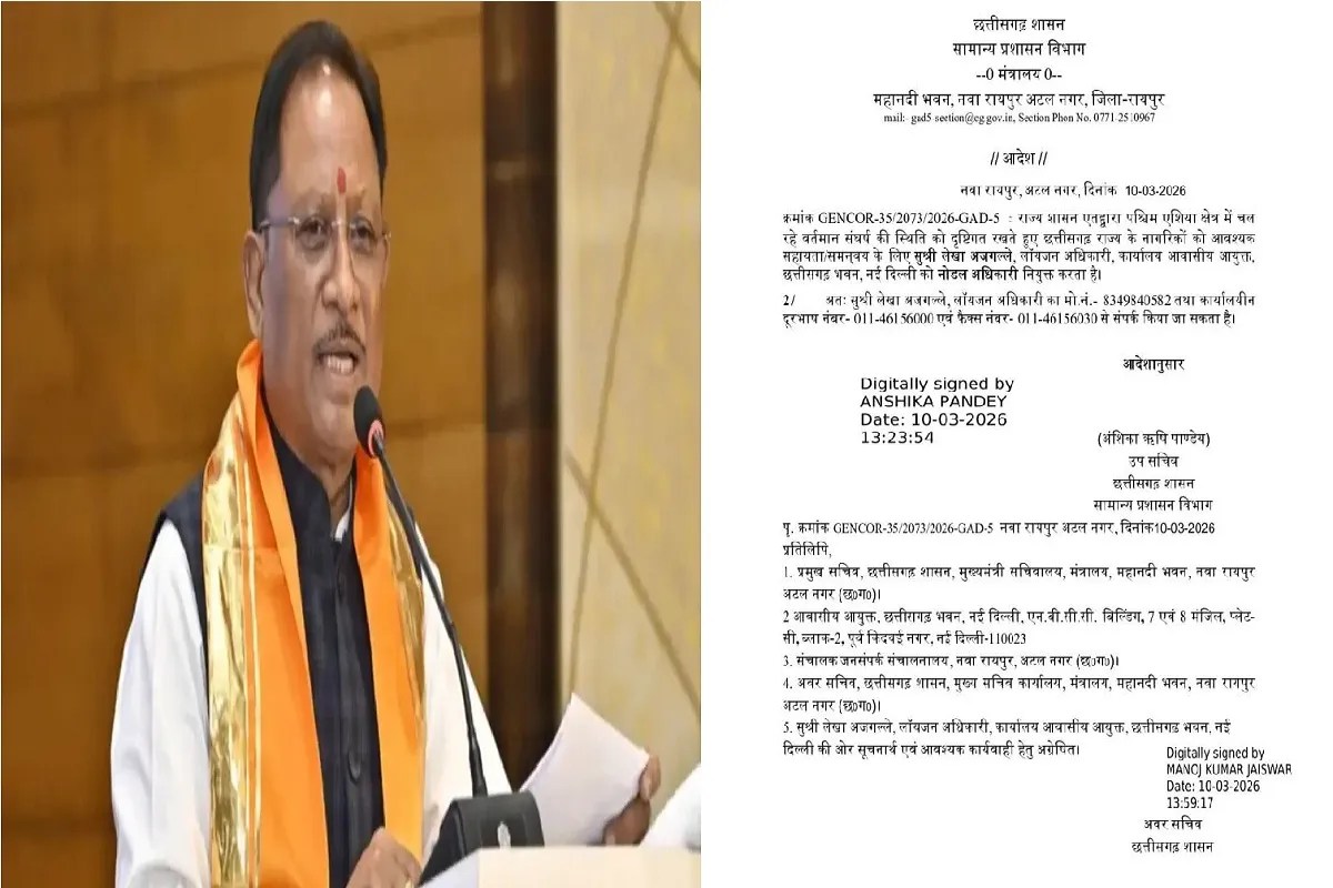 सामान्य प्रशासन विभाग (GAD) द्वारा जारी आदेश के अनुसार लेखा अजगल्ले, लॉयजन अधिकारी, कार्यालय आवासीय आयुक्त, छत्तीसगढ़ भवन नई दिल्ली को इस कार्य के लिए नोडल अधिकारी बनाया गया है। उन्हें पश्चिम एशिया क्षेत्र में मौजूद छत्तीसगढ़ के नागरिकों के आवागमन और आवश्यक सहायता के समन्वय की जिम्मेदारी सौंपी गई है।