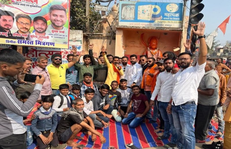 लाखेनगर चौक निगम के जोन-5 में आता है। चौक से जीई रोड के आश्रम तिराहा तक तथा सारथी चौक से आमापारा चौक तक सड़क चौड़ीकरण प्रस्तावित है। शुक्रवार को सुबह जोन अमले ने मंदिर का अधिकांश हिस्सा तोड़ दिया और जिस दीवार में बजरंग बली की मूर्ति सटी हुई थी, उस हिस्से की खुदाई की जा रही थी। इसकी सूचना मिलने पर जागृत युवा मंच के कार्यकर्ता और आसपास के लोगों ने पहुंचकर नारेबाजी और हंगामा खड़ा कर दिया। उनका आरोप था कि निगम प्रशासन गुपचुप तरीके से भगवान की मूर्ति को खंडित करना चाहता है। दूसरी तरफ जोन के अफसरों का कहना है कि 10 से 15 दिन पहले एक बैठक हुई थी, जिसमें चौक के चौड़ीकरण के लिए तोड़फोड़ को लेकर सहमति बन गई थी। इस पर समिति सहमत थी, उसी के द्वारा मूर्ति स्थापना दूसरी जगह की जानी थी।
