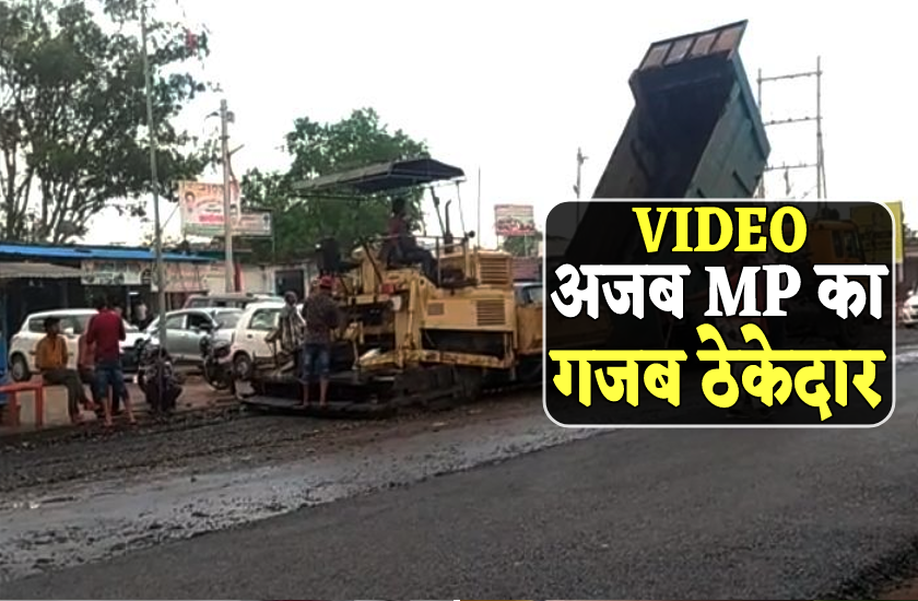 अजब MP का गजब ठेकेदार : बरसते पानी में मंत्री के ड्रीम प्रोजेक्ट वाली सड़क पर बिछा दिया डामर, VIDEO
