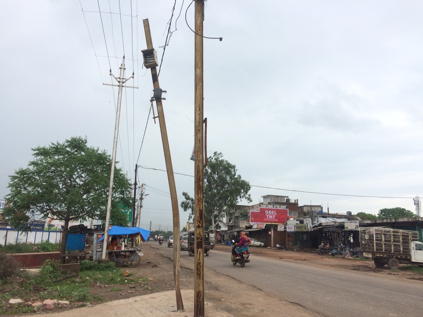 सागर भोपाल तिराहे पर लगा बिजली पोल एक ट्रक की टक्कर से टेढ़ा हो चुका है। लंबे समय बाद भी खंभे को नहीं बदला है। हमने कई बार शिकायतें की पर कोई ध्यान नहीं दिया। - काका ख्यालदास खूबचंदानी, आटो पार्ट्स व्यापारी
