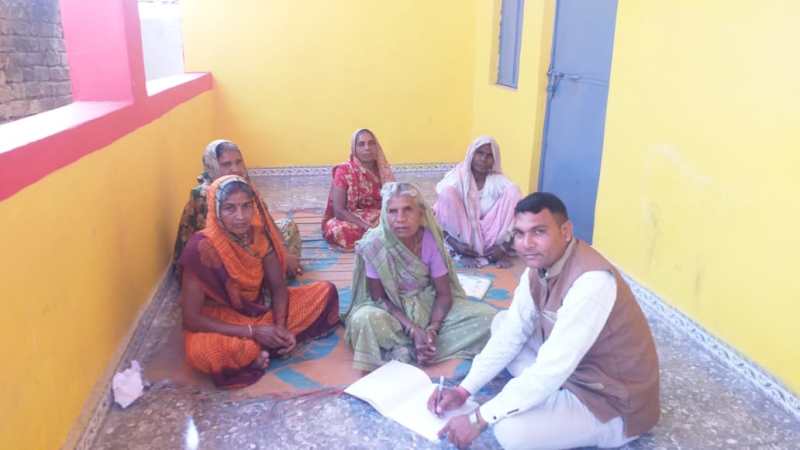 रायसेन. विकासखंड उदयपुरा के ग्राम झमझरी में पिढऩा लिखना सीख रहे बुजुर्ग। (28-04)