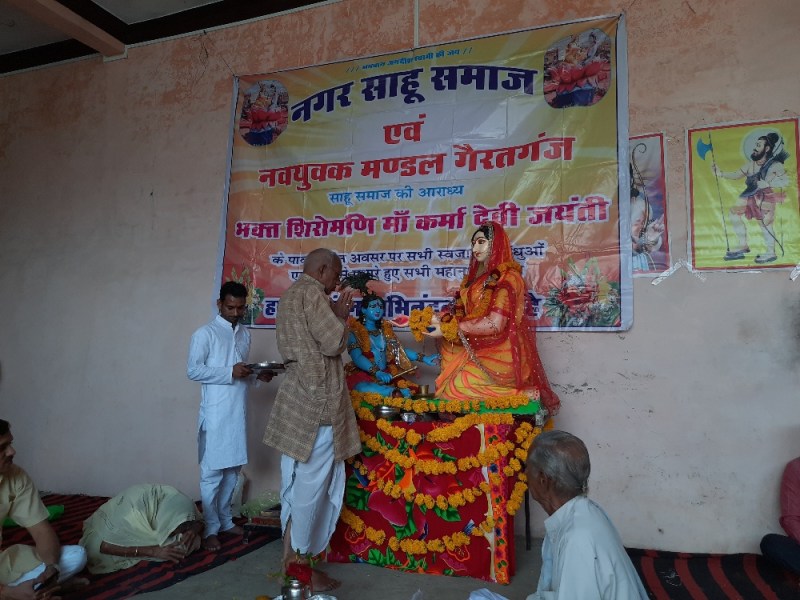 गैरतगंज. नगर साहू समाज द्वारा कोरोना वायरस के प्रकोप के चलते शुक्रवार को संक्षिप्त रूप में केवल पूजा-अर्चना कर भक्त शिरोमणि माता कर्मा देवी की जयंती मनाई गई। इस मौके पर समाजजनों ने माता कर्मा देवी के आदर्शों पर चलने एवं कोरोना वायरस के प्रकोप से सुरक्षा का संकल्प लिया।